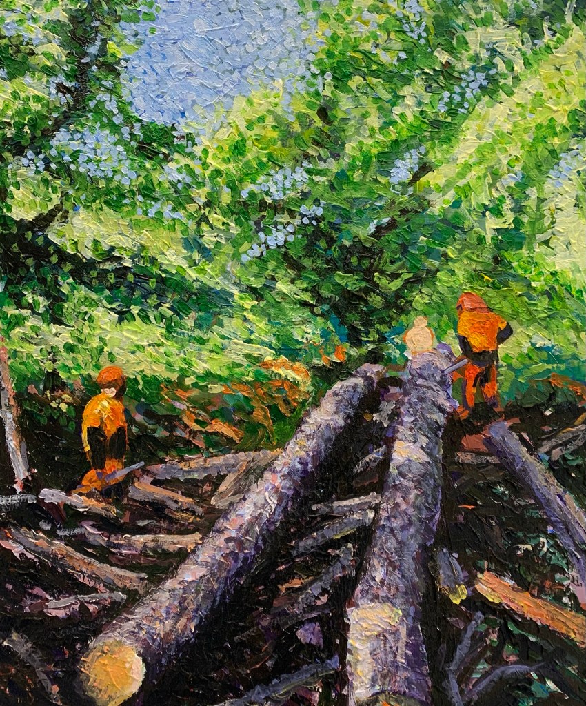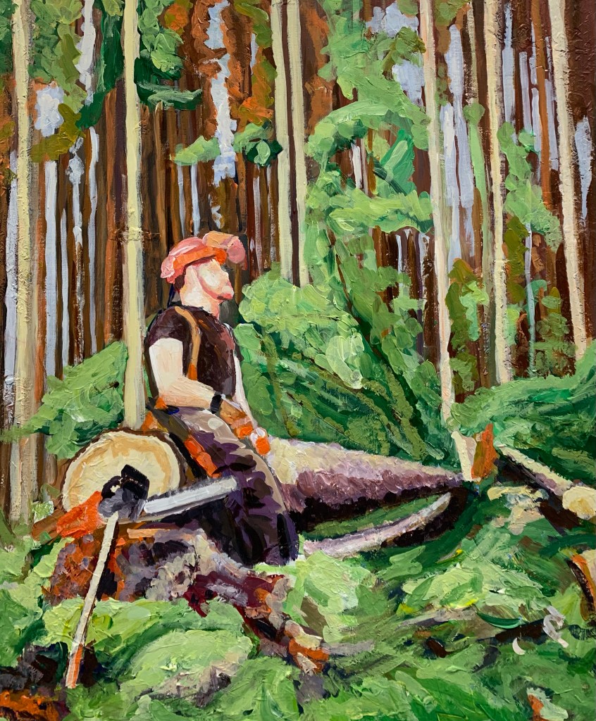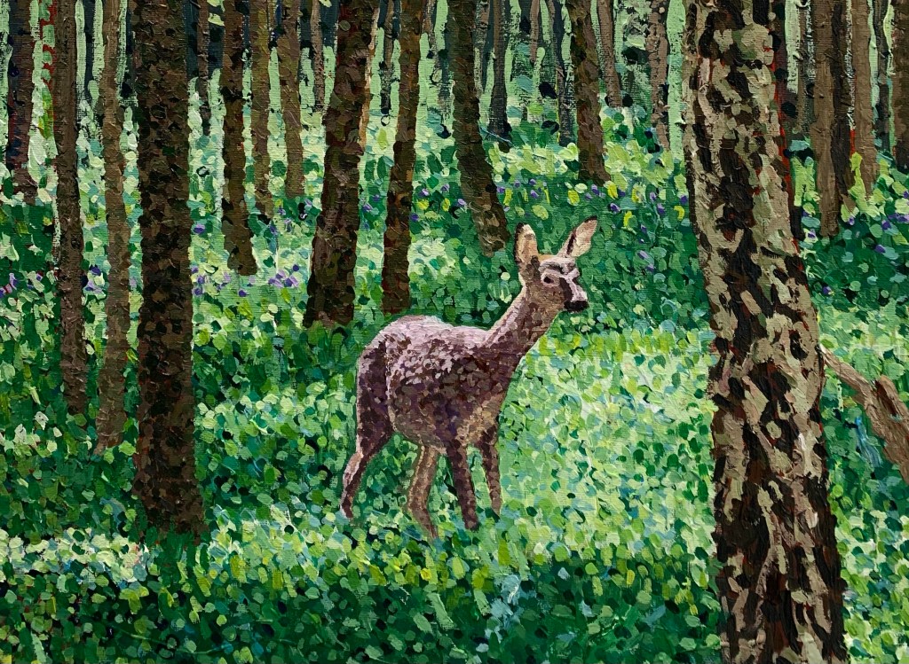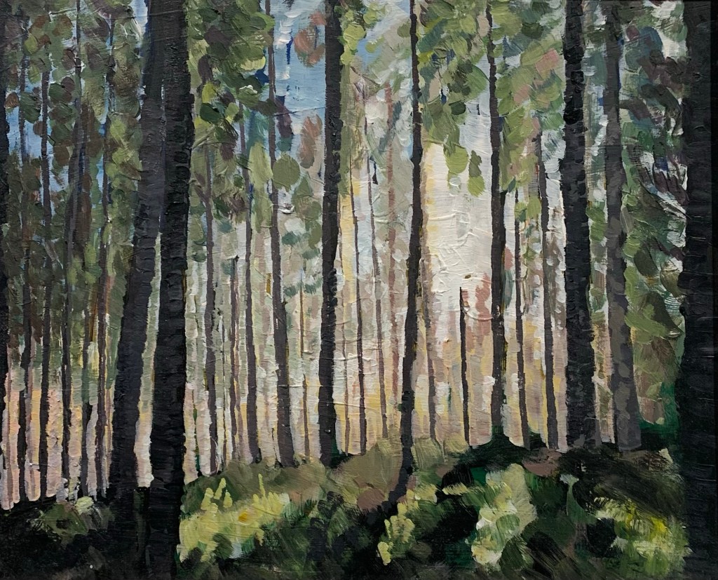 Tariffing the Norway Spruce, Hodgemoor wood – £1500Corsican Pine, canvas size 51cm x 61cm – £800Oh deer, canvas size 41cm x 30.5cm – £200Donnie – On loanHarvesting site visit, frame size 28.5cm x 33.5cm – SoldTimber stacks at Christmas Common – SoldMisty Wendover, frame size 36.5cm x 32cm – SoldSnedding at Grizedale, canvas size 51cm x 61cm – £800Dan – £800Wendover Beeches – SoldLate autumn in the New Forest, canvas size 40.5cm x 51cm – £350Thetford Forest, Two Mile Bottom, canvas size 100cm x 50cm – £500Summer Larch trees – Sold