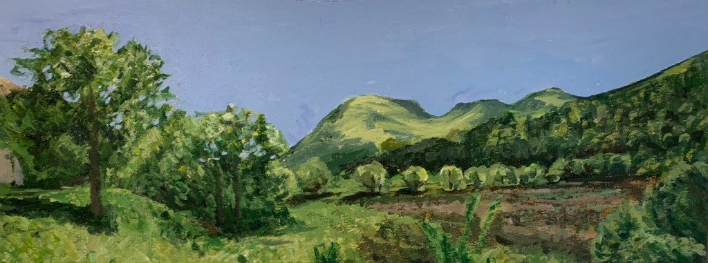 Pillar, Lake District, frame size 46cm x 35cm- £500Poppy dog, frame size 35cm x 46cm – not for saleThe fields of Barningham – SoldMorning in the Wye Valley, frame size 28.5cm x 33.5cm – £150Fell walking, canvas size 81cm x 101.5cm – £1000Lockdown in the Ennerdale Valley, canvas size 50cm x 20cm – £200Lunchtime in High Gillerthwaite – SoldGreat Gable – SoldWandering Wild, canvas size 91.5cm x 61cm – £1500Dawn in the New Forest, canvas size 100cm x 50cm- SoldCorrour, canvas size 41cm x 30.5cm – £350Sunset at McCaigs Tower Oban, frame size 62cm x 52cm – £500The Sound of Mull – £500